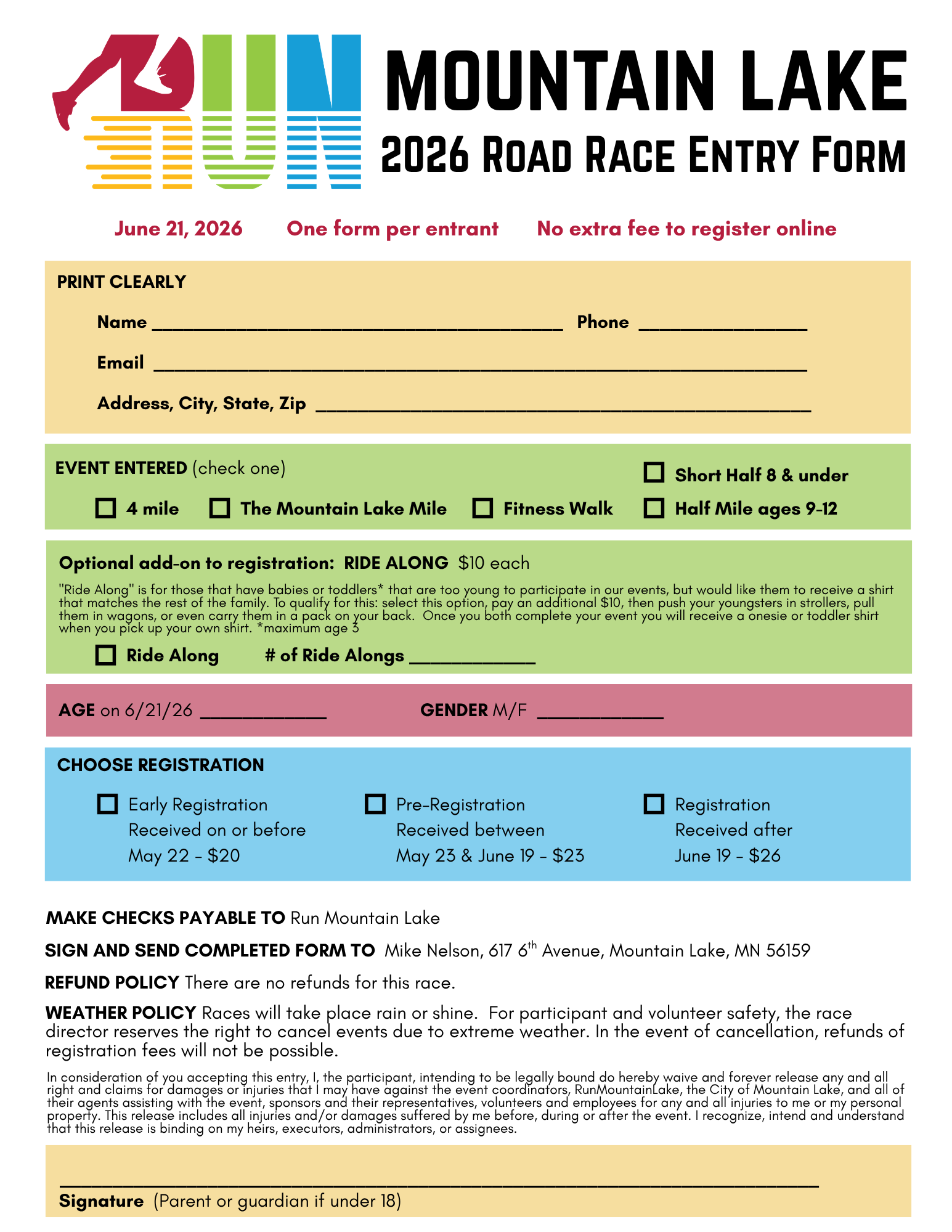 Welcome to the Mountain Lake Road Race, a proud tradition and one of the longest-running races in Minnesota! As we gear up for our 53rd annual event, we invite you to be a part of a race that’s consistently recognized for its organization and execution.